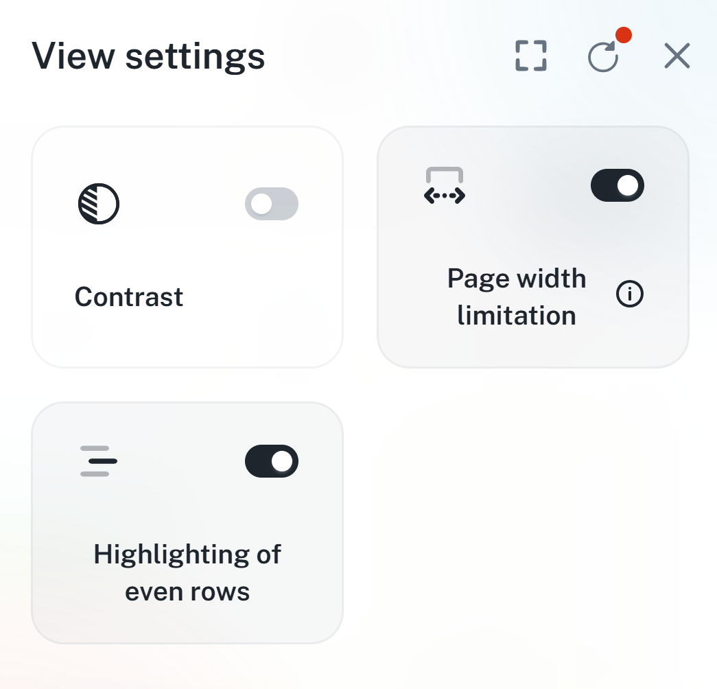 Reset settings - this option resets the app’s appearance settings back to defaults. Any changes from the default will show a red dot above the icon.