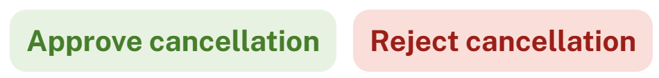 You process cancellation requests in the same way as approval requests: using the buttons in the Quick Actions section of the table.