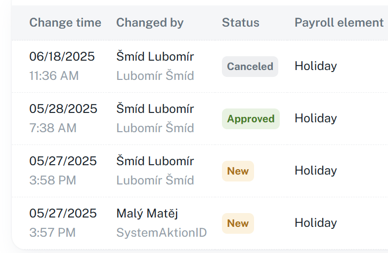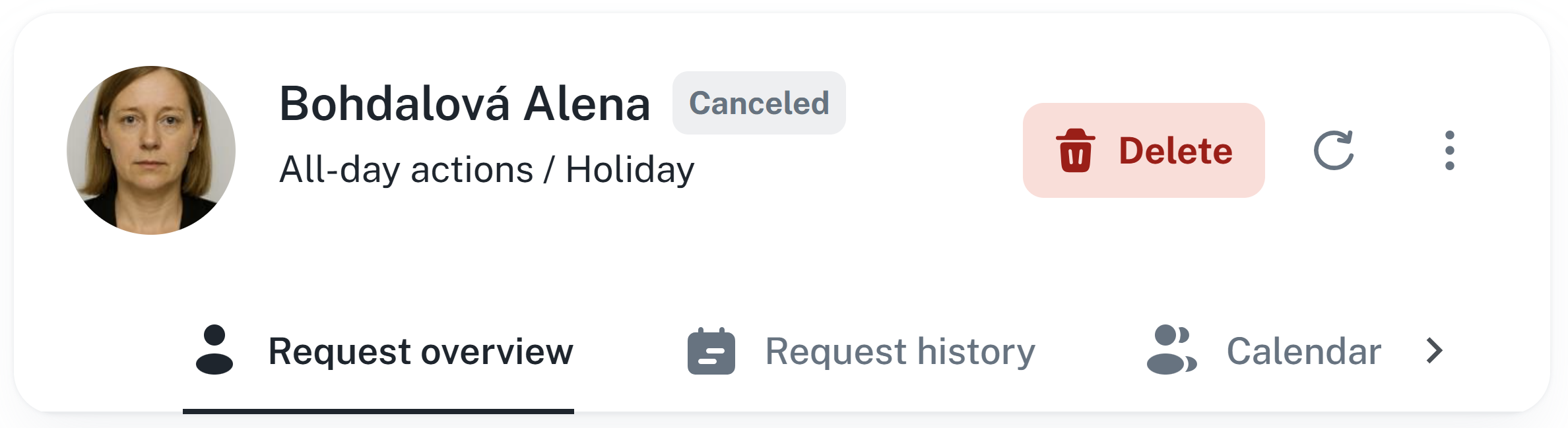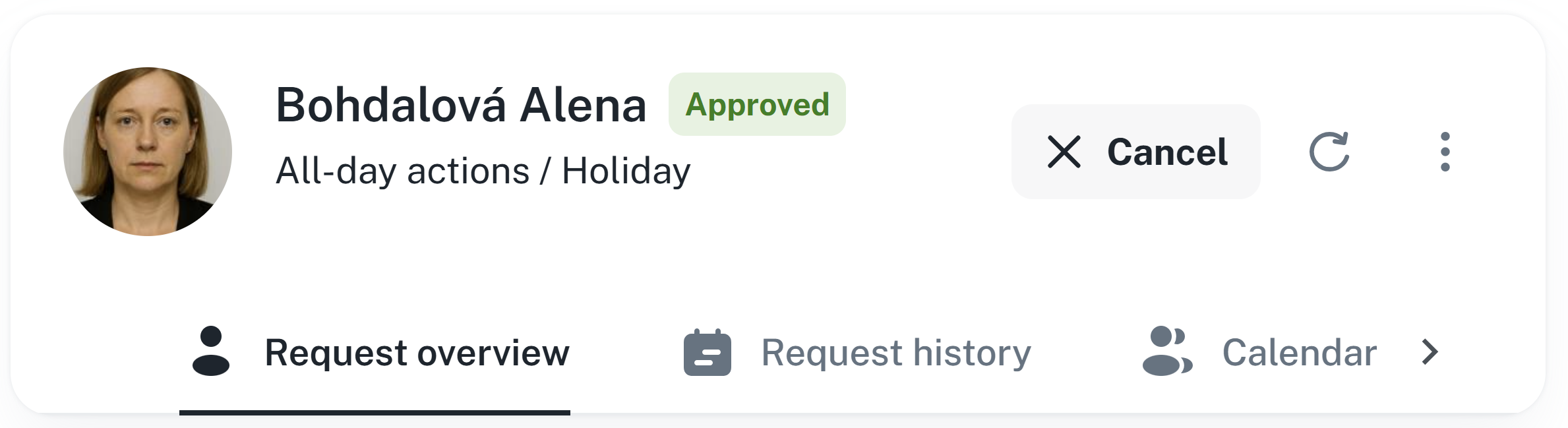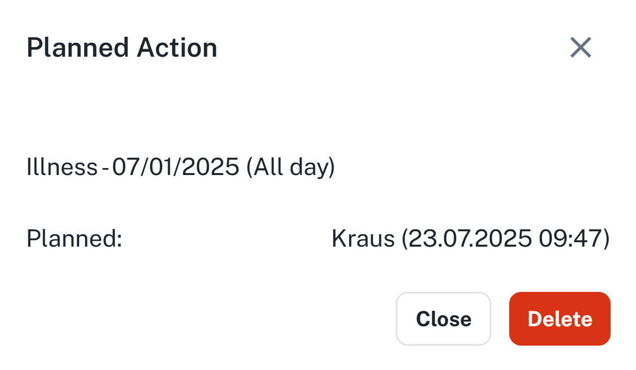 Requests and actions - Actions (without approval) and requests (with approval) are differentiated. Both have their own way of planning, editing and cancelling.
