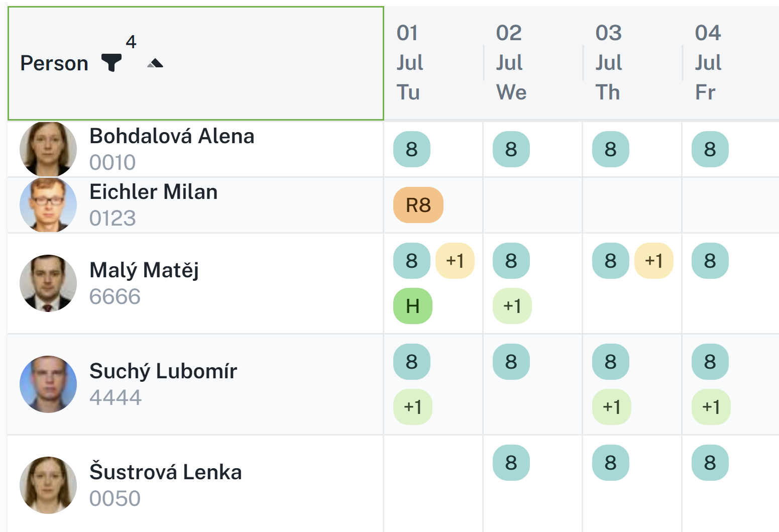 Allows you to manage shifts / emergencies / actions and persons’ requests. The options are in calendar aswell but only for the logged in user. For modifying multiple persons, you need to switch to the agenda Shifts schedule.