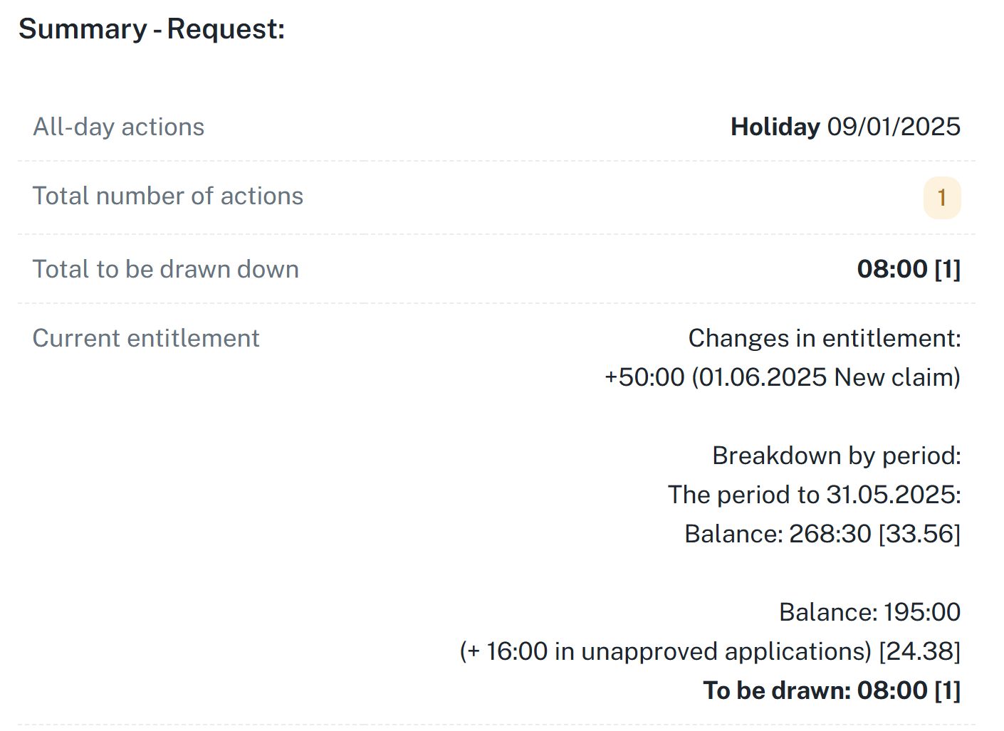 Entitlement and drawdown - Contains information regarding the usage of the remaining balance