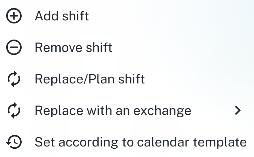 By right-clicking on a specific day in the calendar, you will open a context menu with shift management options: