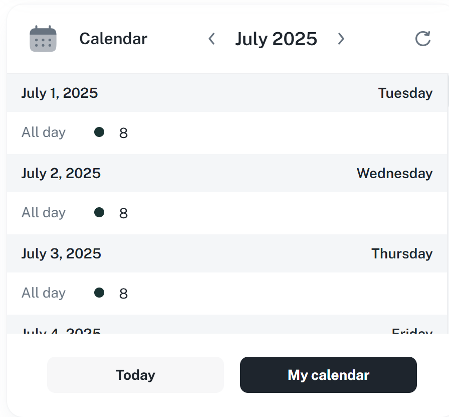 The Monthly Statement option switches the calendar to a tabular view, just like the Calendar widget in size S