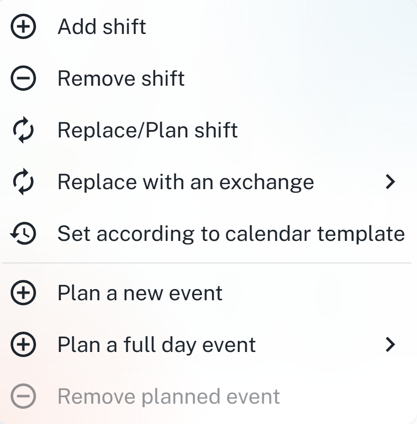 From the Shift Plan agenda, it is possible to schedule events for employees.