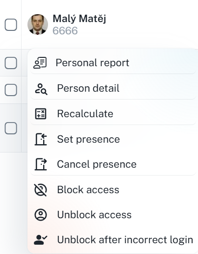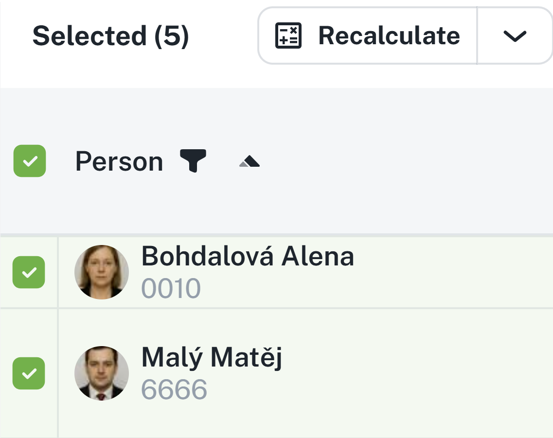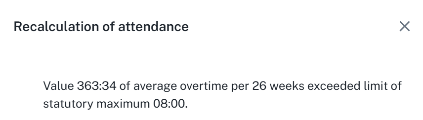 Recalculate - recalculates attendance data until the end of the period and, if necessary, displays warnings according to the Labour Code.