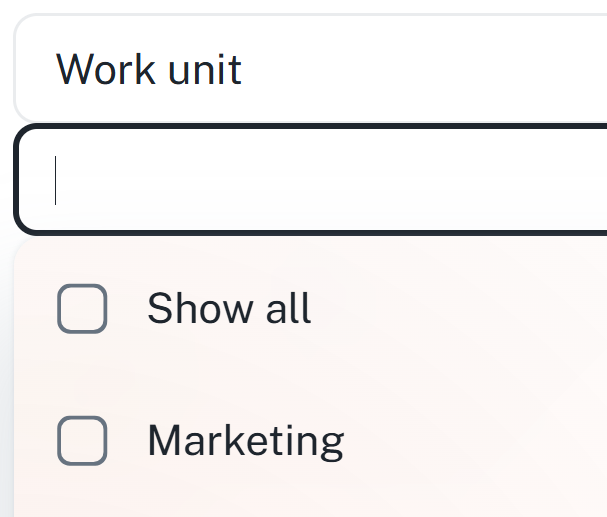 On this panel, you can filter by organizational structure or work unit. The organizational structure is divided into individual companies, which are then further divided into their own organizational structure – for example, IT, Presentation, Sales, etc.