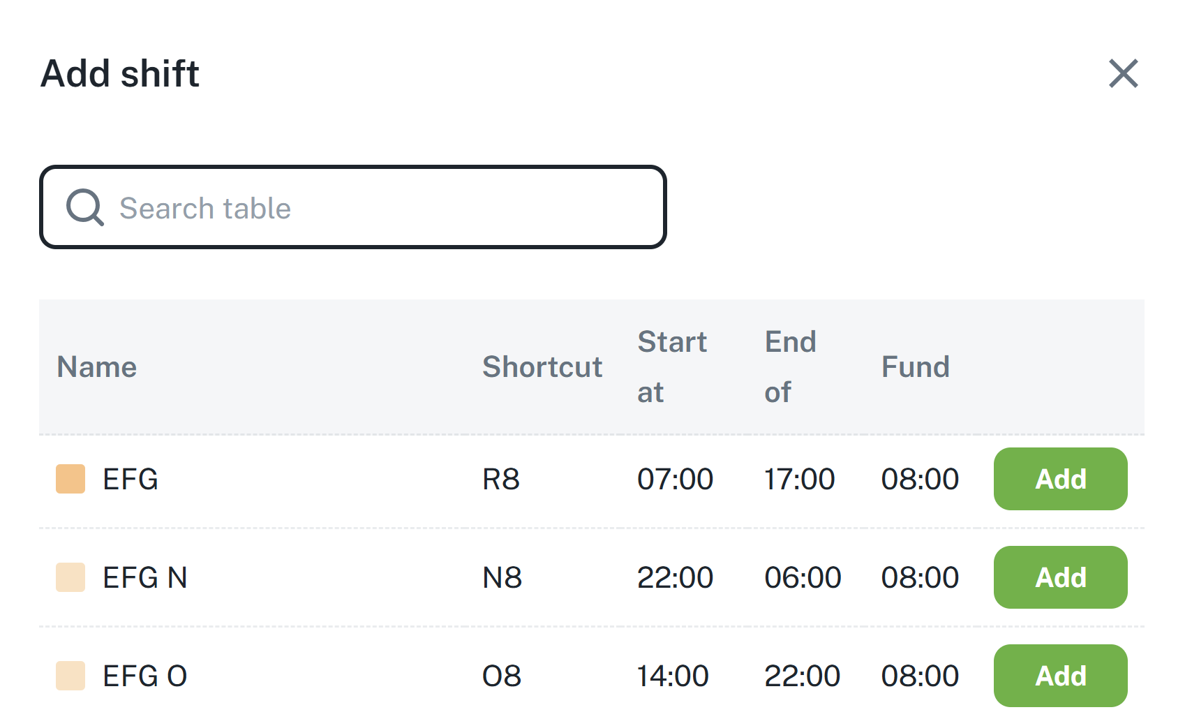 Replace/Schedule shift - Functions the same as Add shift, but replaces the existing shift.