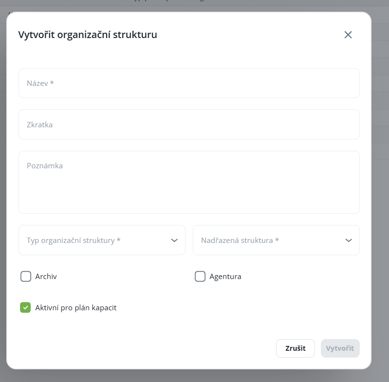 Parent level – when creating a new organizational structure, in addition to the name it is necessary to fill in the Parent level field. The highest structure (root) is always preset.