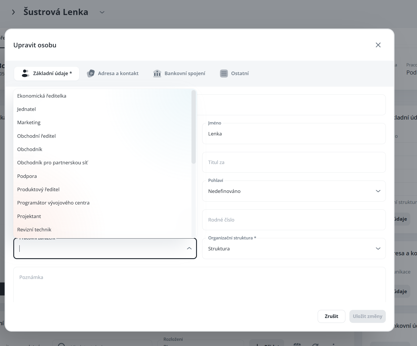 In the detail of the agenda Persons on the Basic data tab, click the “Add job position” button