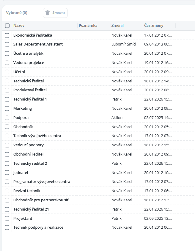 Overview of job positions indicating who changed them and when.